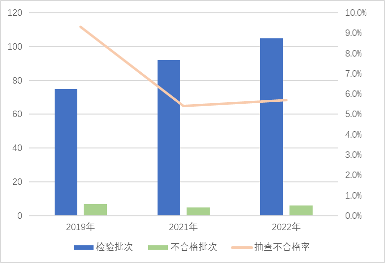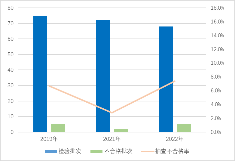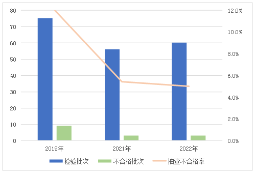 圖5 危險化學品包裝物產(chǎn)品近3年國家監(jiān)督抽查情況