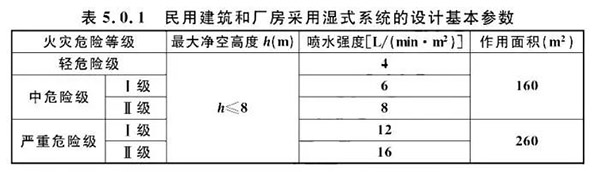 答:是的,表5.0.1、表5.0.2分別規(guī)定了h≤8m、8m<h≤18m濕式系統(tǒng)的參數(shù),《自動(dòng)噴水滅火系統(tǒng)設(shè)計(jì)規(guī)范》GB 50084第5.0.10條、第5.0.11條規(guī)定干式系統(tǒng)、預(yù)作用系統(tǒng)的參數(shù)時(shí)引用了表5.0.1,未引用表5.0.2,故干式系統(tǒng)、預(yù)作用系統(tǒng)僅針對不超過8m的場所。