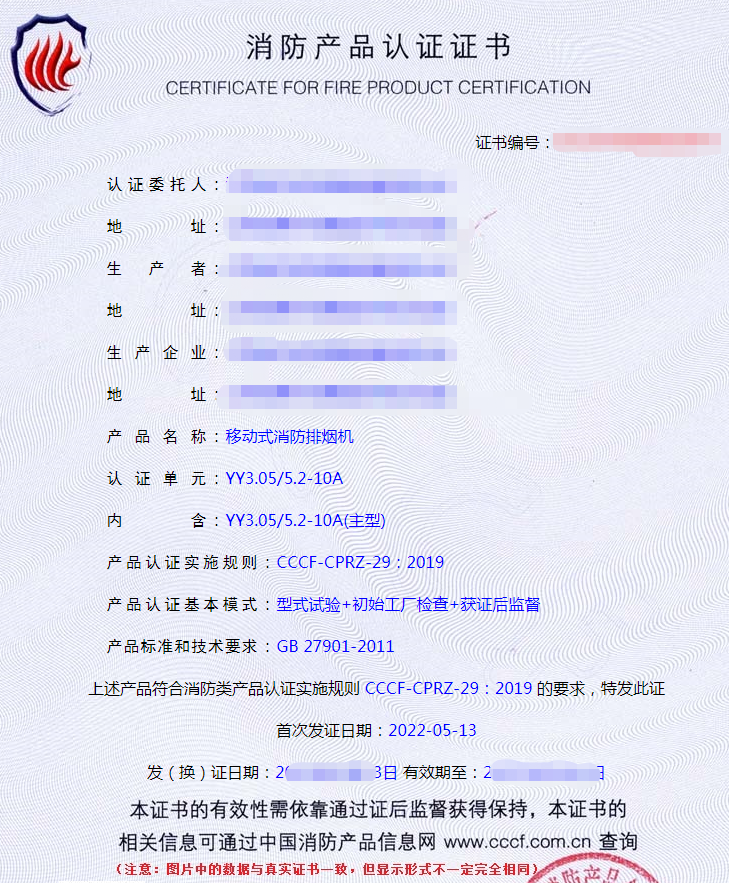 移動式消防排煙機認證檢驗要求